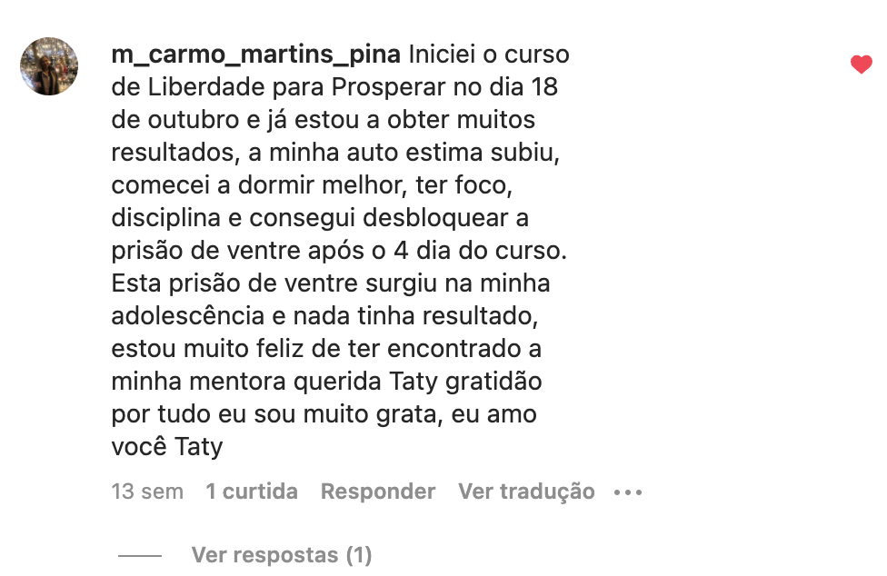 Minha trajetória é marcada por resultados reais: mulheres que antes viviam presas em dívidas, inseguranças e relações tóxicas hoje vivem com autonomia, abundância e autoestima elevada. Minha missão é clara: mostrar que é possível prosperar de dentro para fora — e que dinheiro e felicidade caminham juntos.